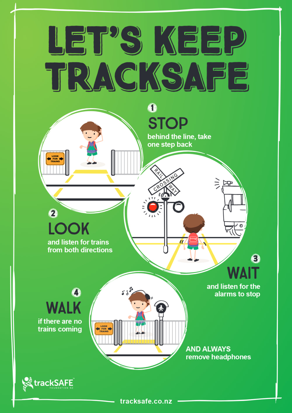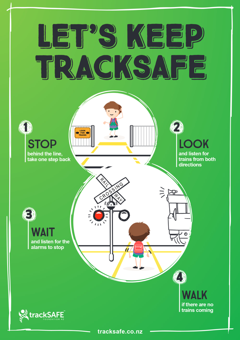 Foundation Manager Megan Drayton says the “Let’s Keep TrackSAFE” materials are aimed at reminding students that following the simple safety drill of “Stop, Look, Wait and Walk,” will help keep them safe around railway tracks.