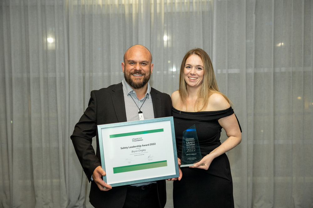 2022 award winner Bryce Ongley with KiwiRail's Cat Salt.